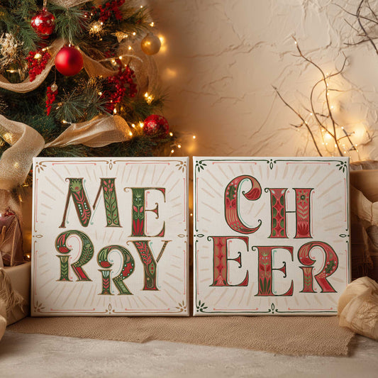 Wreath It and Cheer, Set of 2 Canvas Prints