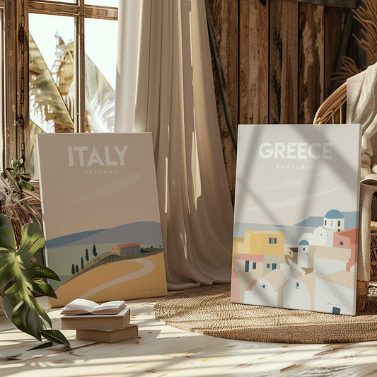 Mediterranean Travel Poster Duo Canvas Print, Set of 2