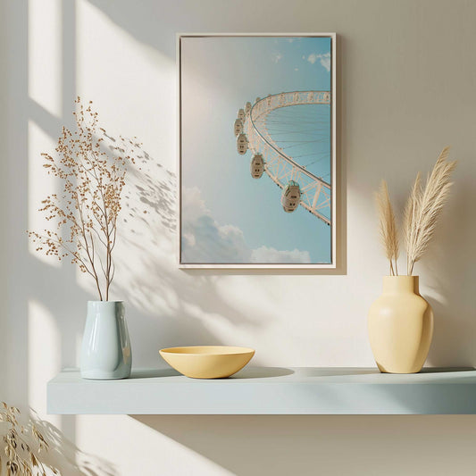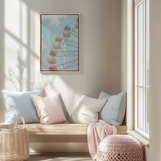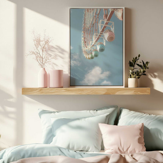 Pastel Ferris Wheel Against Blue Sky Canvas Print