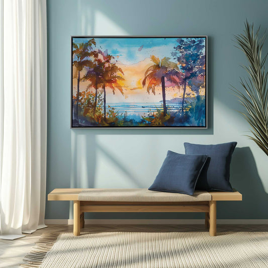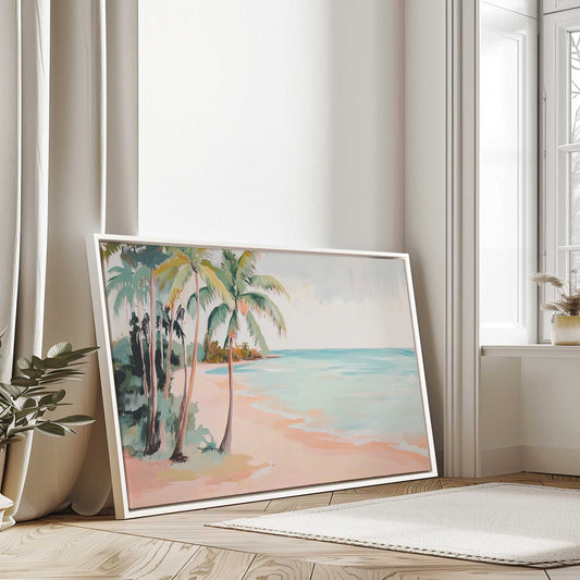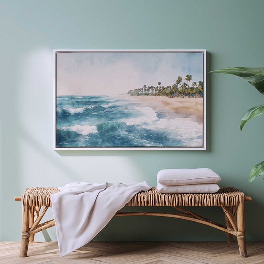 Coastal Shoreline with Palm Trees and Aqua Waves Canvas Print