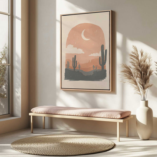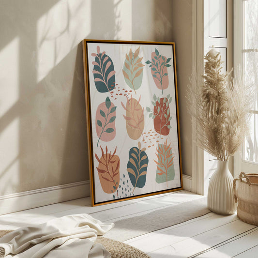 Relaxing View of a Tropical Beach Through Palm Leaves Canvas Print