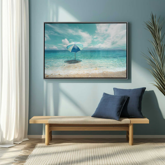 Peaceful Coastal Scene with Aqua Water and Beach Umbrella Canvas Print