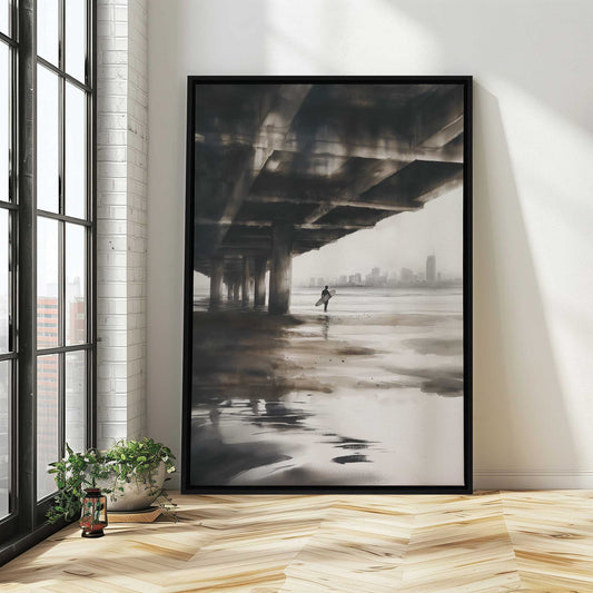 Surfer Walking Under the Pier Canvas Print