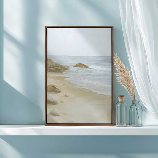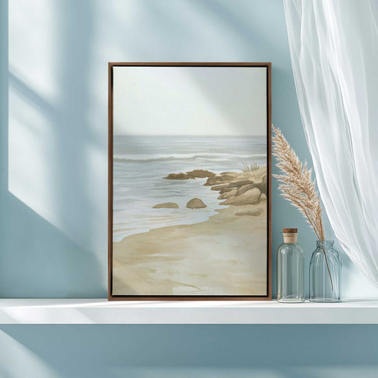 Soft Coastal Shoreline with Gentle Waves and Rocks I Canvas Print
