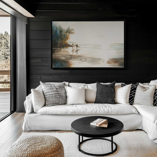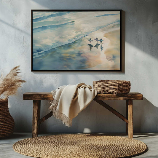Surfers at Golden Shoreline Canvas Print
