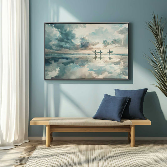 Surfers and Reflections at Dusk Canvas Print
