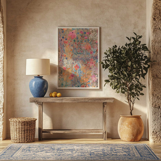 Colorful Wildflowers in Watercolor on Warm Beige Art Print