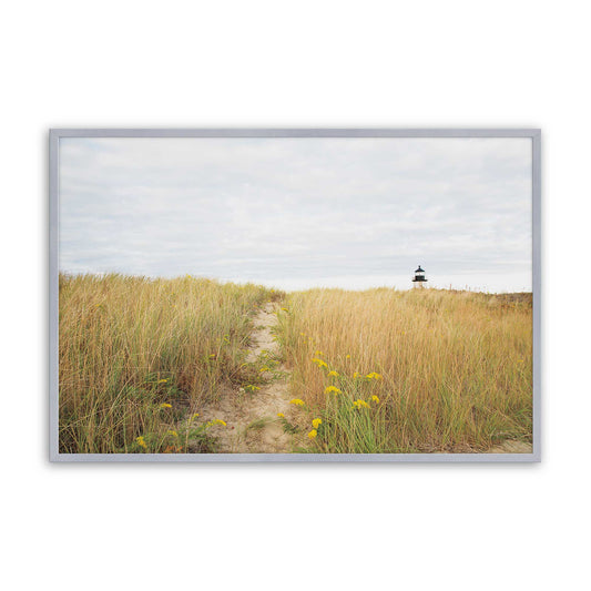 Sandy Beach Path Leading to Lighthouse Through Dunes Paper Print