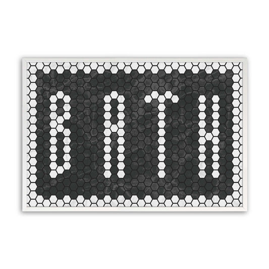 Black and White Hex Tile Art with BATH Text II Paper Print