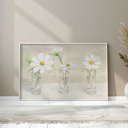 White Daisies in Clear Vases I Paper Print
