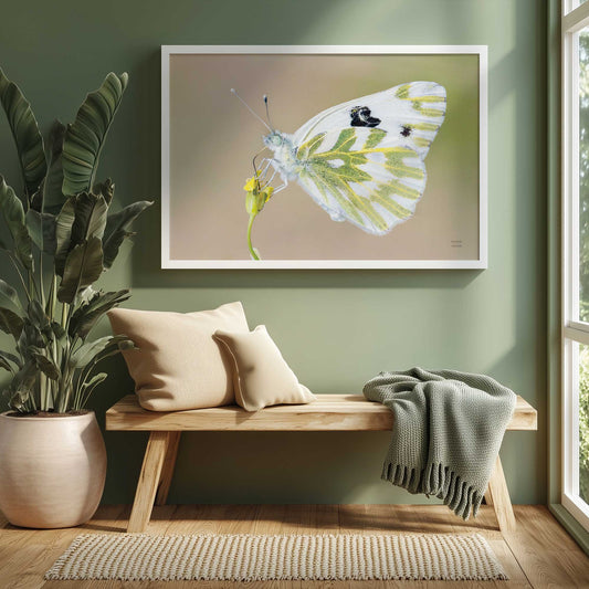 Macro Close-Up of Green and White Butterfly Paper Print