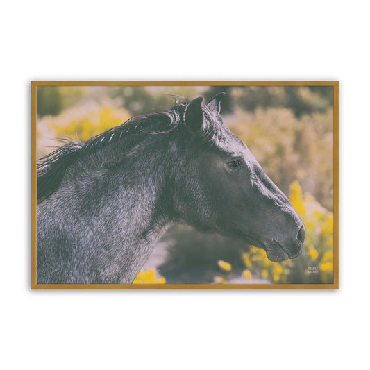 Dappled Black Horse in Wildflower Bloom Paper Print