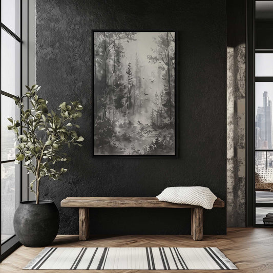 Black and White Highland Cows in a Woodland Clearing Paper Print