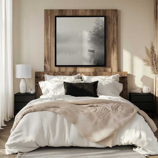 Black and White Sea Urchins with Lace Shadows on Wood Paper Print