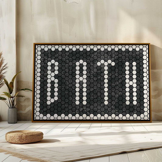 Black and White Hex Tile Art with BATH Text I Paper Print