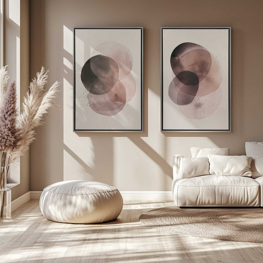 Blush Ink Layers with Black Splatter Accents - Set of 2 Prints