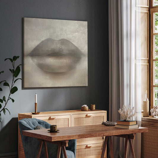 Beige Kiss Lips Canvas Print