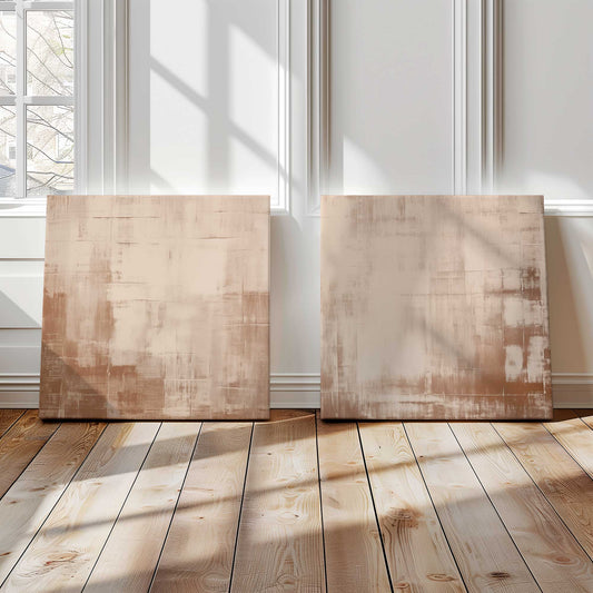 Beige Bliss Abstract Canvas Print, Set of 2