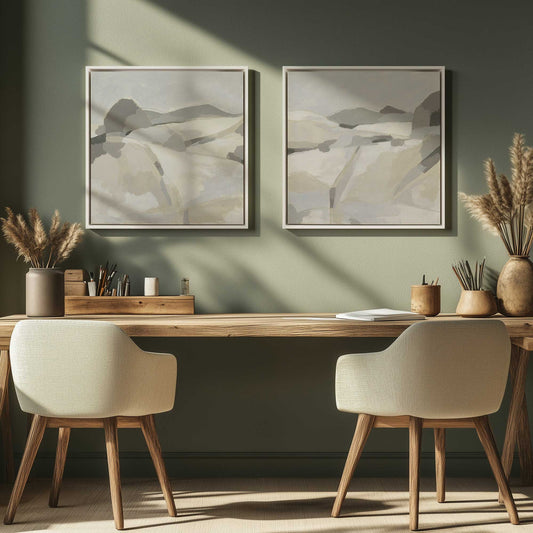 Beige Abstract Horizons Canvas Print, Set of 2