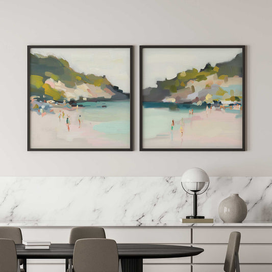 Calm Cliffside Coast Pair Art Print, Set of 2