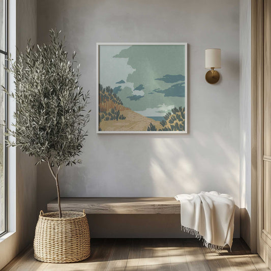 Soft Coastal Shoreline with Gentle Waves and Rocks I Print