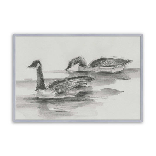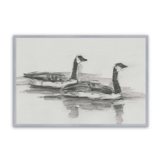Minimalist Sketch of Two Geese Gliding on the Water I Paper Print