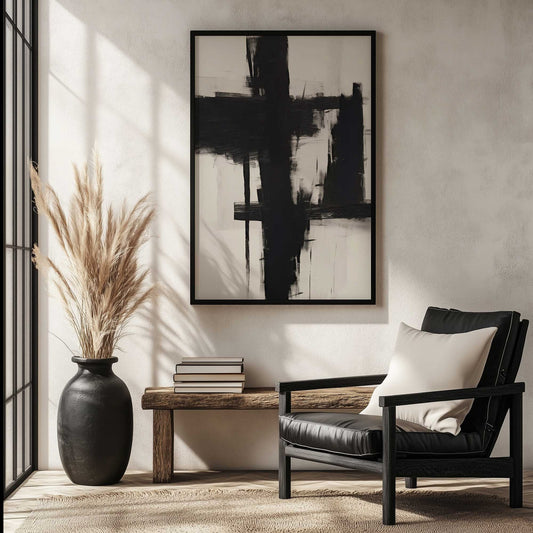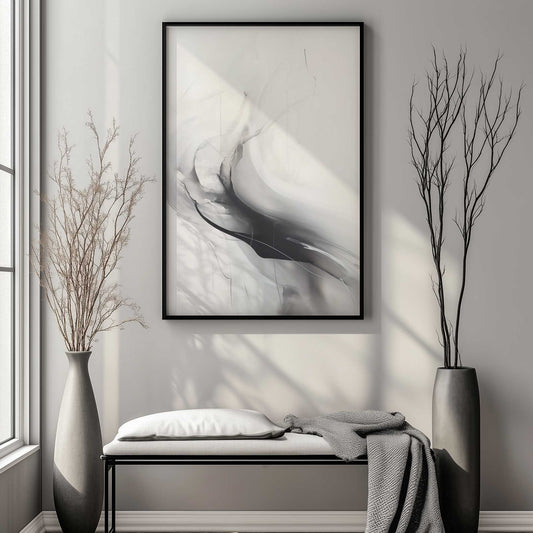 Bold Black and White Abstract Swirl Explosion Vibes I Paper Print