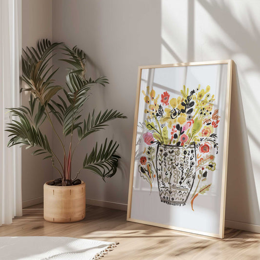 Whimsical Bouquet with Fungi and Blooms Paper Print