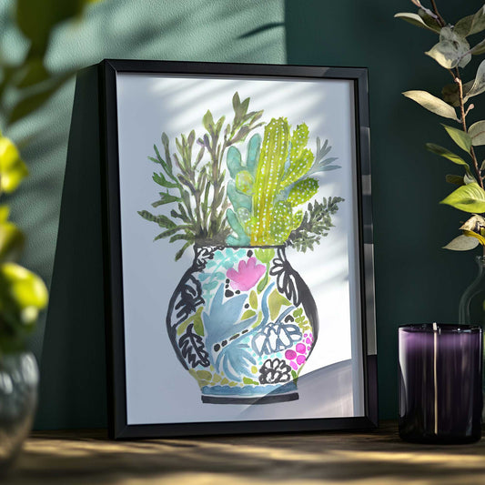 Chill Palm Tree Cityscape with Soft Watercolor Vibes I Print