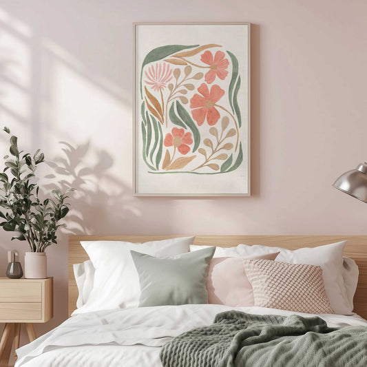 Abstract Wildflowers in Warm Pink and Earthy Tones Paper Print