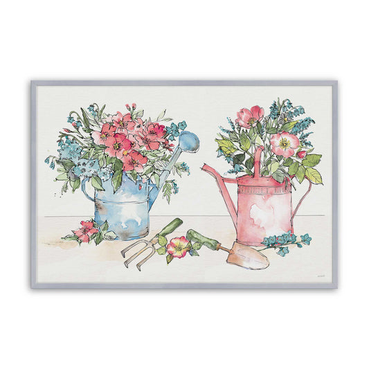 Pink Blossoms and Blue Irises on Green III Paper Print
