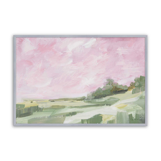 Abstract Green Hillside Under Soft Pink Sky Paper Print