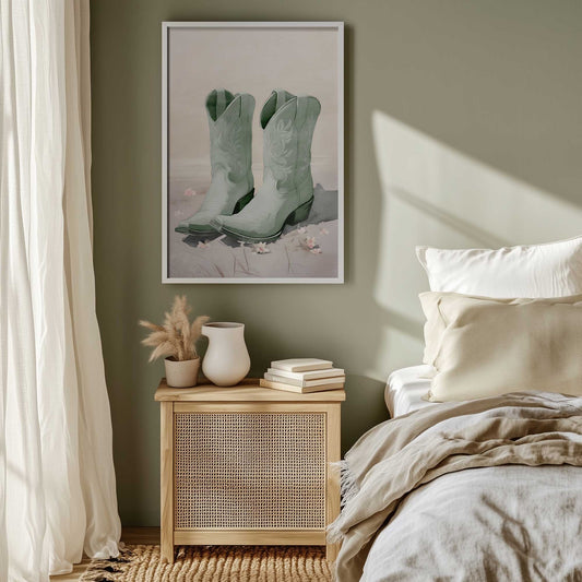 Mint Cowboy Boots Art Print