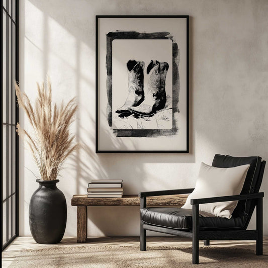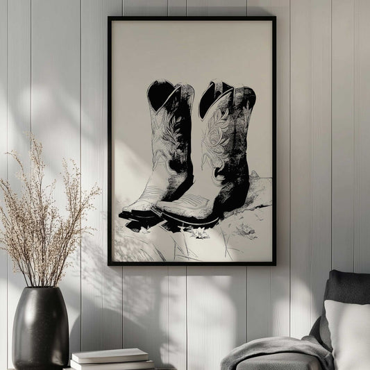 Black and White Cowboy Boots Art Print