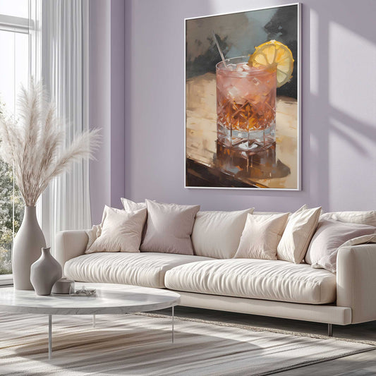 Whiskey Cocktail with Lemon Garnish on Abstract Bar Surface Art Print