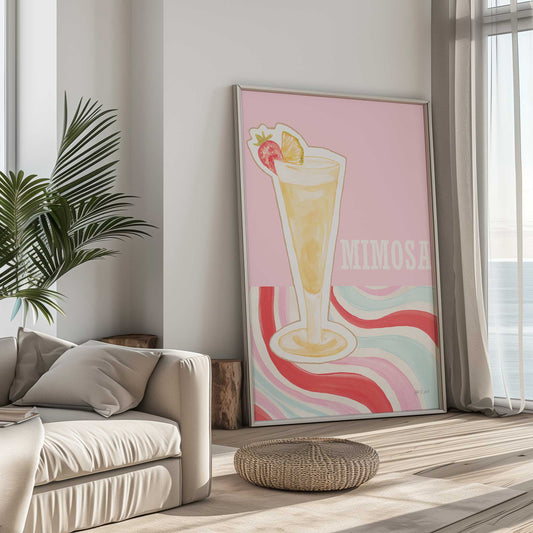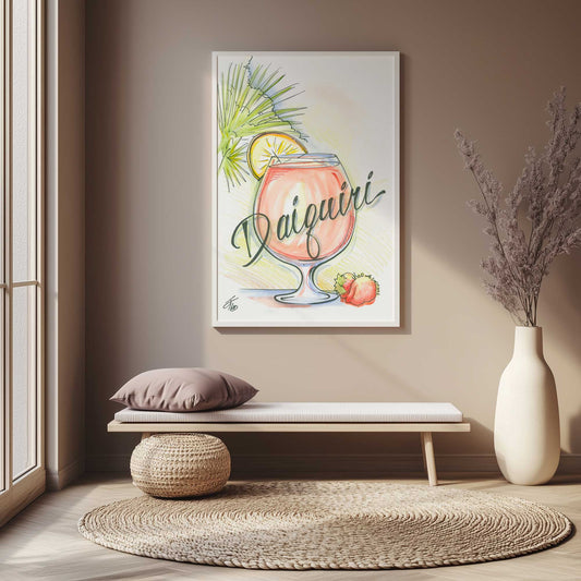 Strawberry Daiquiri Cocktail with Lemon Slice and Palm Leaves Art Print