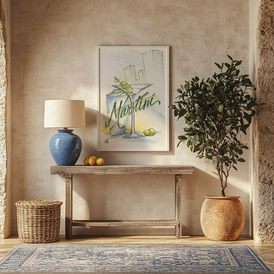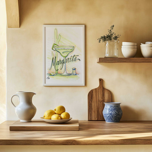Margarita Cocktail with Cactus, Lime, and Salt Shaker Art Print