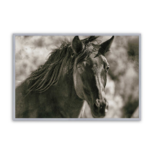 Black Horse in Golden Field with Windswept Mane I Paper Print