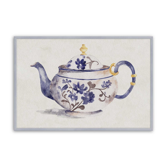 Elegant Blue Floral Teapot with Vintage Charm Paper Print