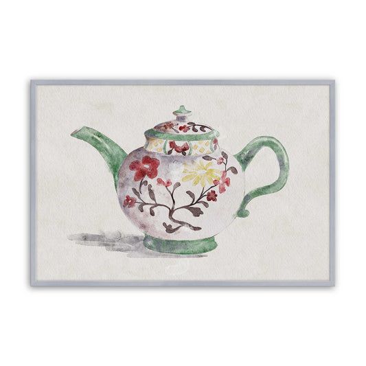 Charming Floral Teapot with Green Accents and Vintage Vibe Paper Print