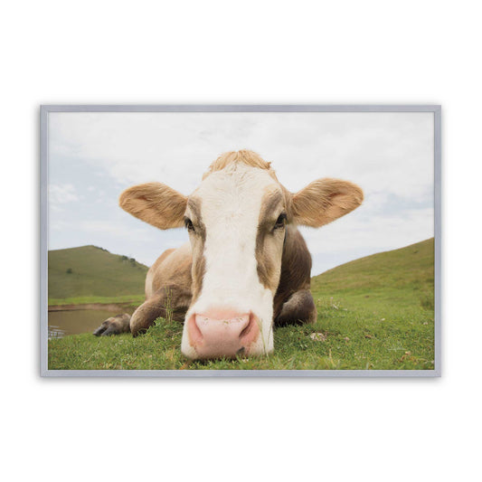 Close-Up of a Chill Cow Lounging in a Peaceful Pasture Paper Print