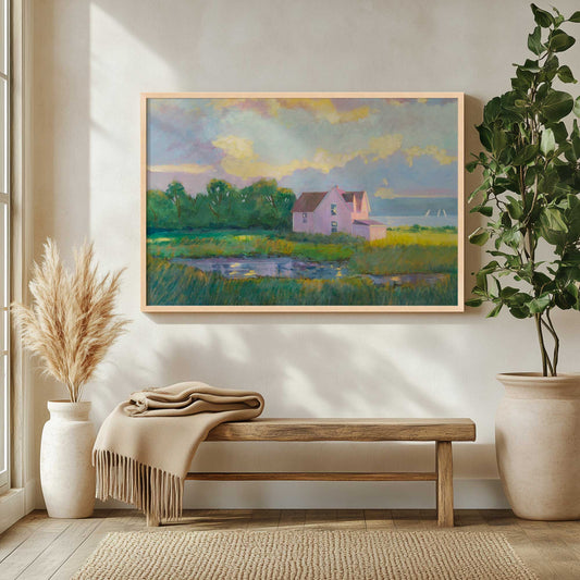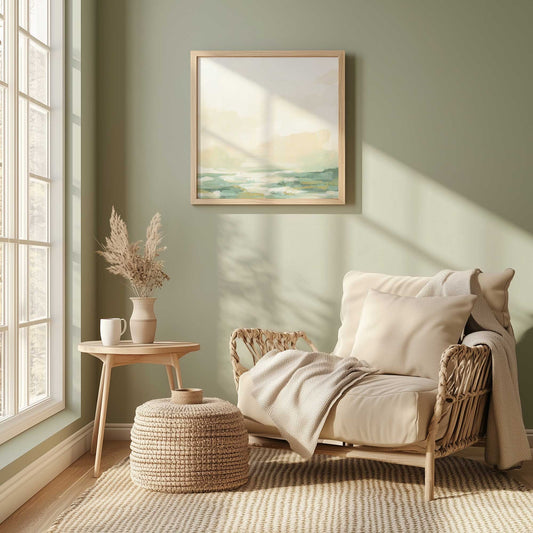 Soft Watercolor Mountain View with Peaceful Lakeside Scene I Paper Print