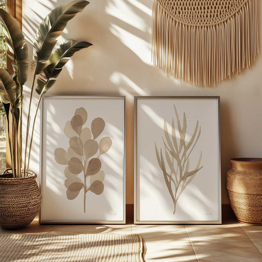 Tan Leaf Impressions Set of 2 Art Prints