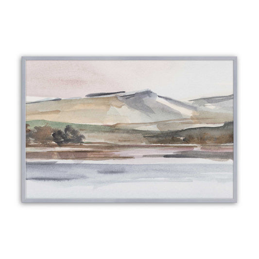 Soft Watercolor Mountain View with Peaceful Lakeside Scene I Paper Print