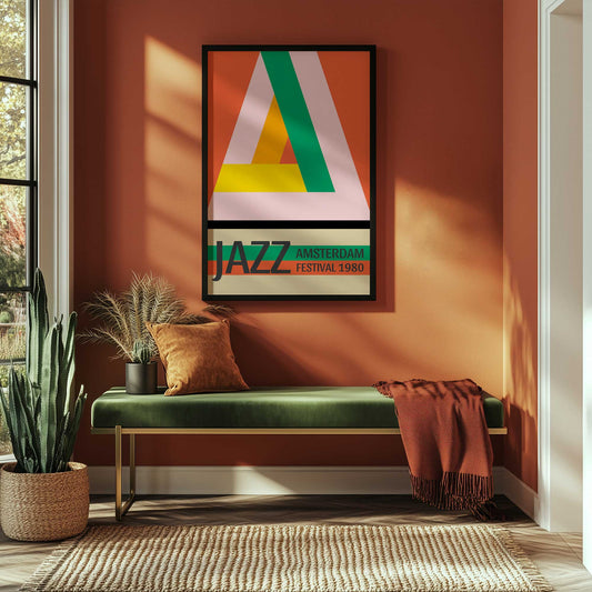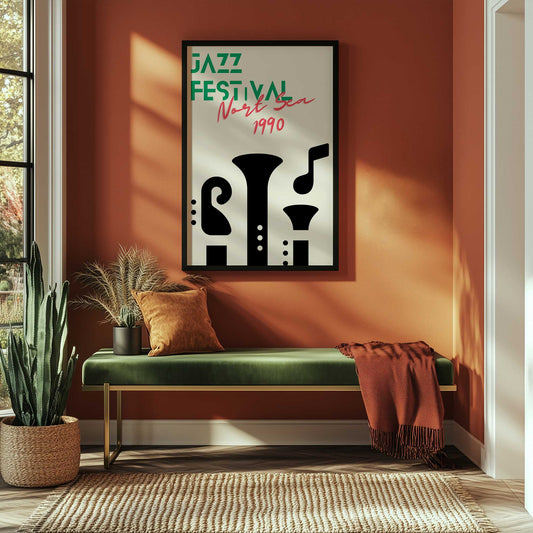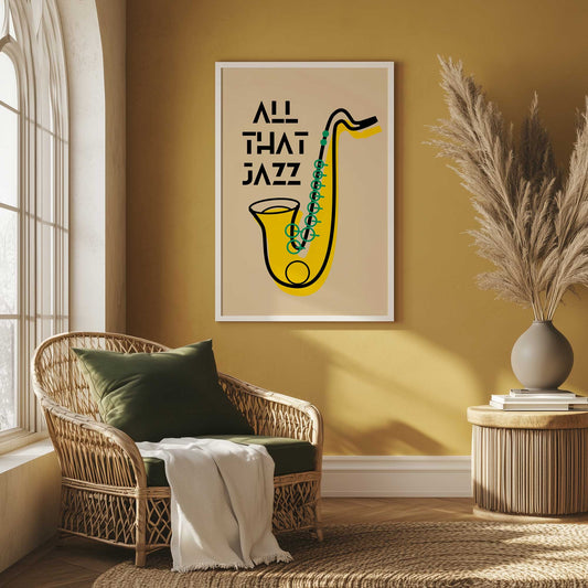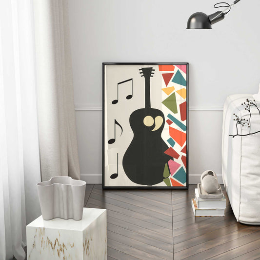 Bold Black Instrument Silhouettes with Pops of Retro Color Paper Print