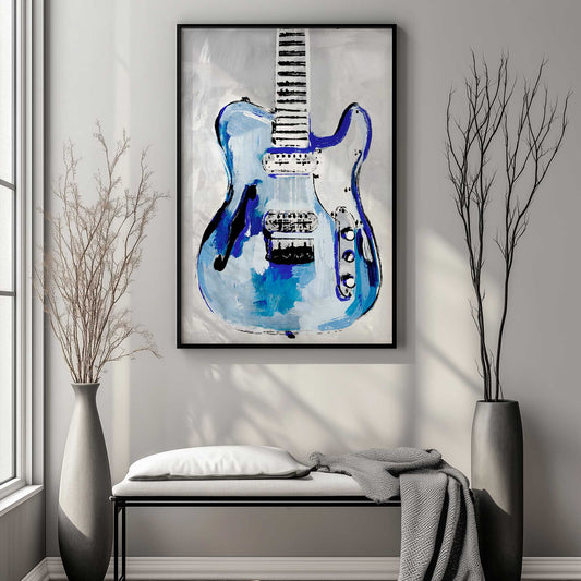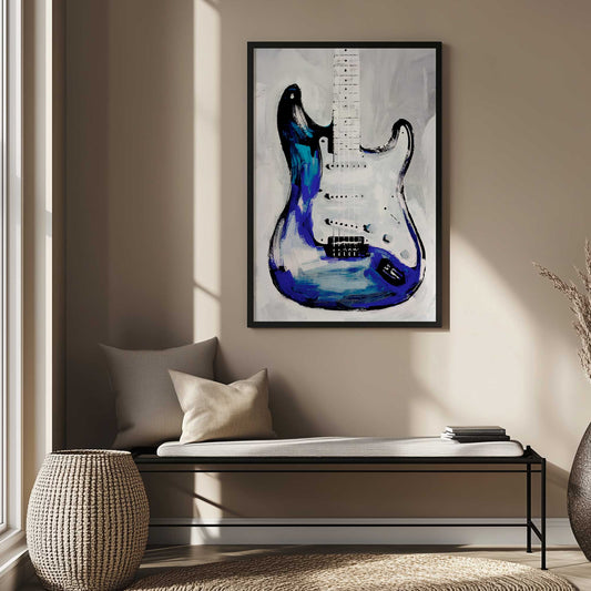 Retro Diner Scene with Guitar Player and Classic Car Art Print