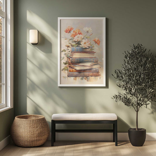 Vintage Books and Soft Florals in Pastel Tones II Art Print