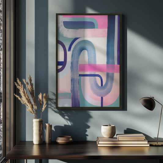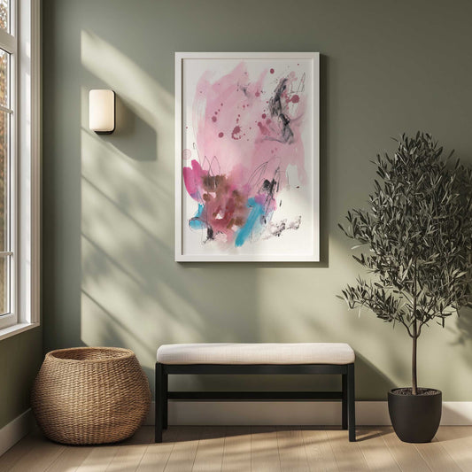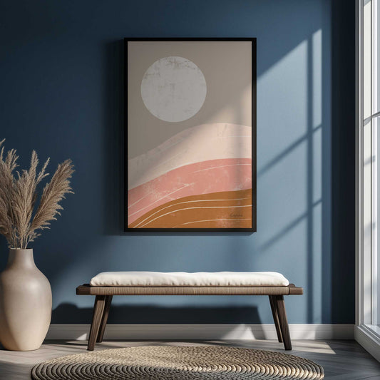 Abstract Green Hillside Under Soft Pink Sky Paper Print