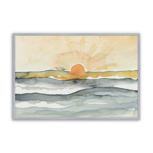 Soft Sunrise Over Ocean Waves in Watercolor Layers Art Print