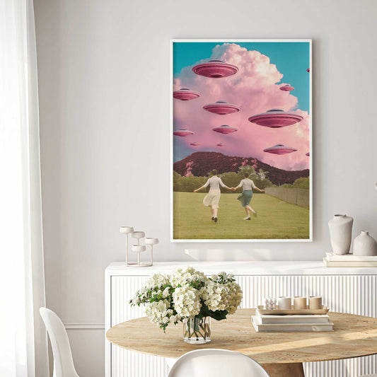 Vertical Retro Motel Sign with Pastel Sky Art Print